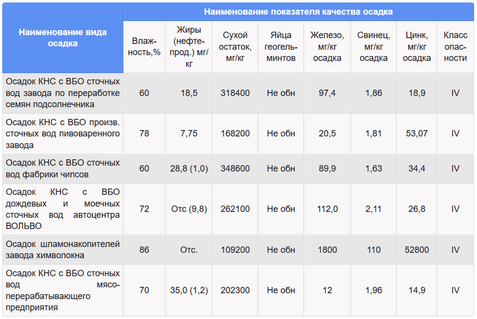 Исследовались также  осадки станции нейтрализации производственных сточных вод пивоваренного завода, предприятия по производству химволокна.