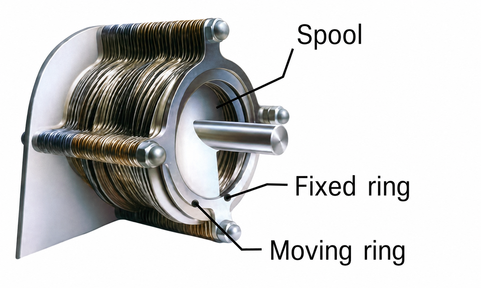 The dewatering unit consists of a screw rotating at a constant speed between fixed rings, movable rings and gaps. The screw moves the rings between the gaps and thus prevents the drum from clogging.