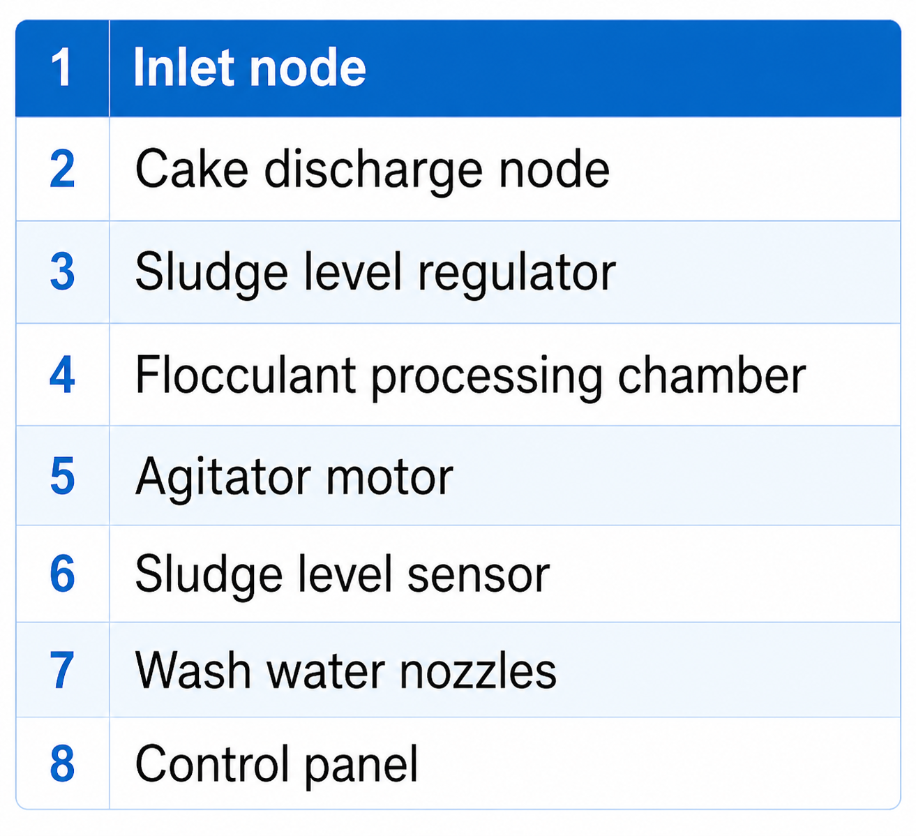 The unit operates automatically using level sensors or a timer. The stabilized sludge is pumped to the flocculant treatment section, then the sludge is sent to the dewatering unit.