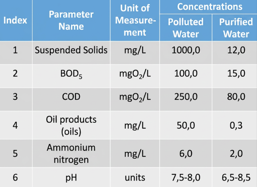 The composition of polluted rainwater and meltwater (using the example of the developed Potential-4 treatment facilities in Kyiv) and water purified using Potential-4 technologies is given in Table 1.