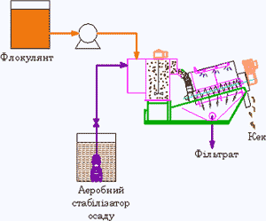 Кек скидається у контейнер, а фільтрат прямує в голову очисних споруд
