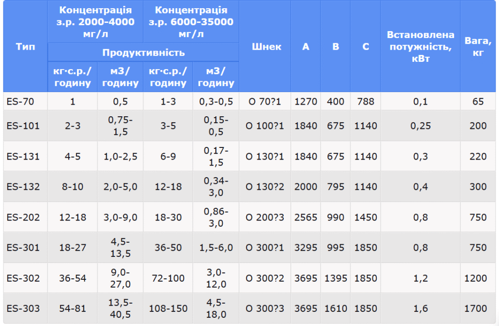 Після обробки флокулянтом осад подається на вузол зневоднення. У процесі зневоднення фільтрат витікає із зазорів між кільцями. Ширина зазорів зменшується у напрямі виходу кеку. У зоні згущування вона складає 0,5 мм; у зоні зневоднення звужується від 0,3 мм до 0,15 мм. Крок витків шнеку так само зменшується, створюючи тиск у зоні зневоднення, тоді як об’єм осаду зменшується. На кінці шнеку встановлена прижимна пластина, яка регулює внутрішній тиск у барабані